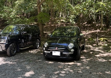序盤の登り、体調を心配したけれど無事相棒のもとに戻って来られておつかれ山。フィアット君は都会的だ。山にはお隣さんのようなクルマの方が似合うかもね。