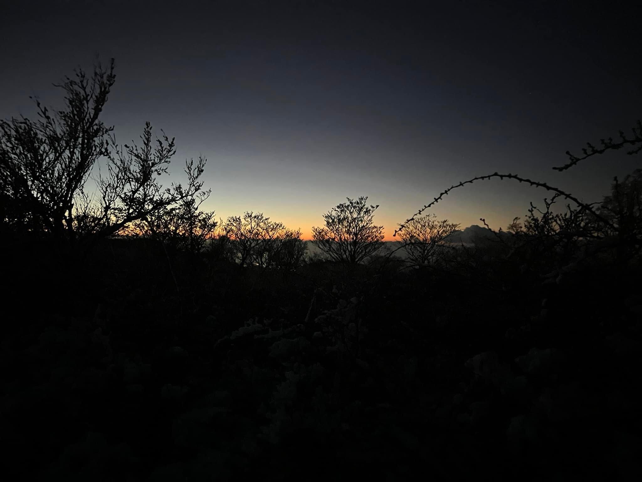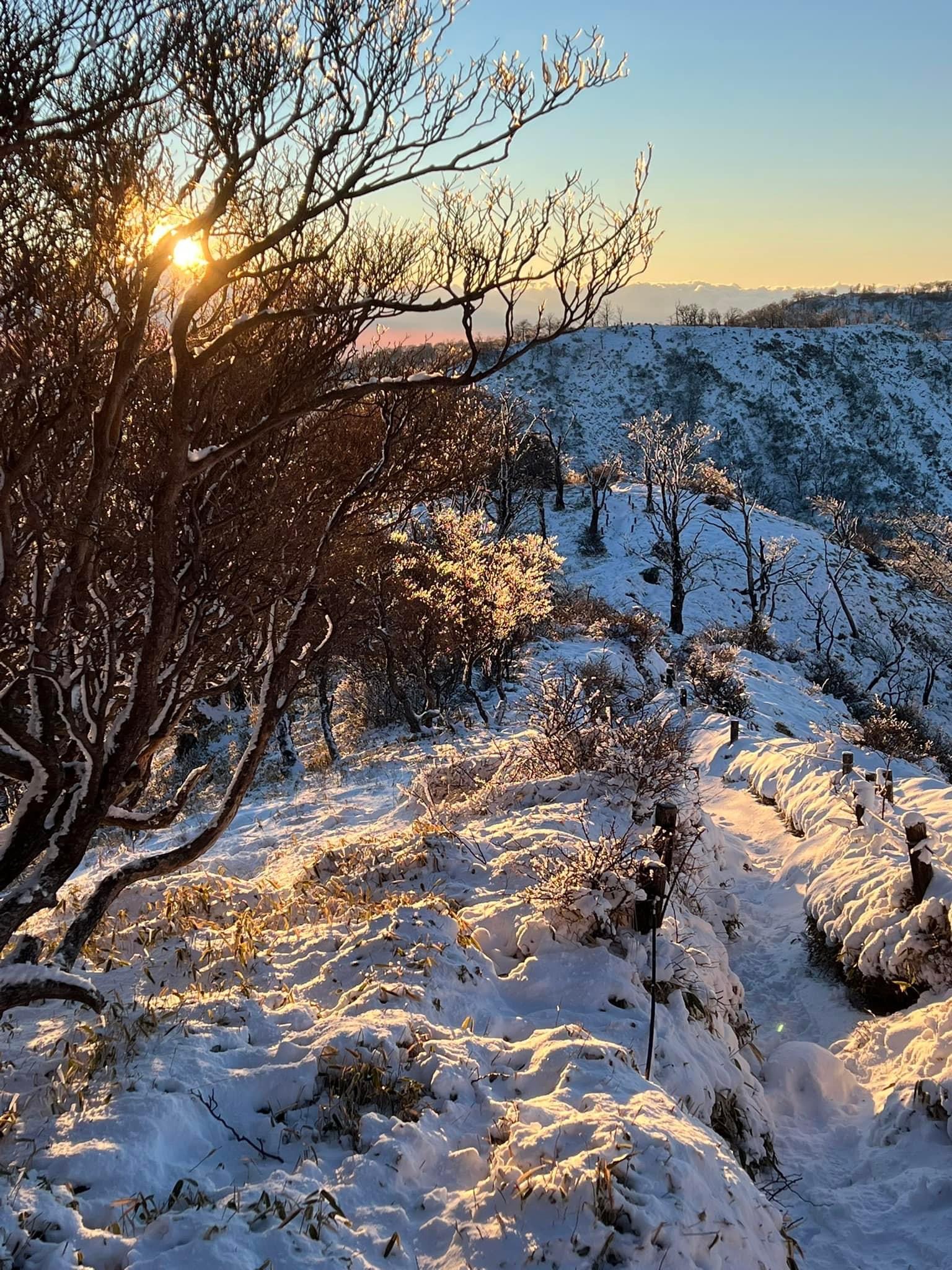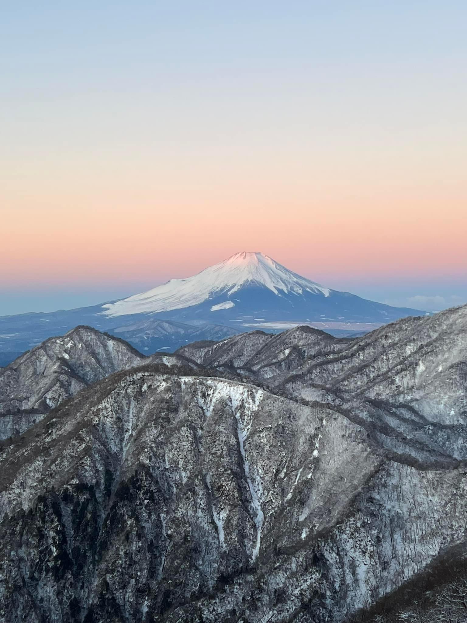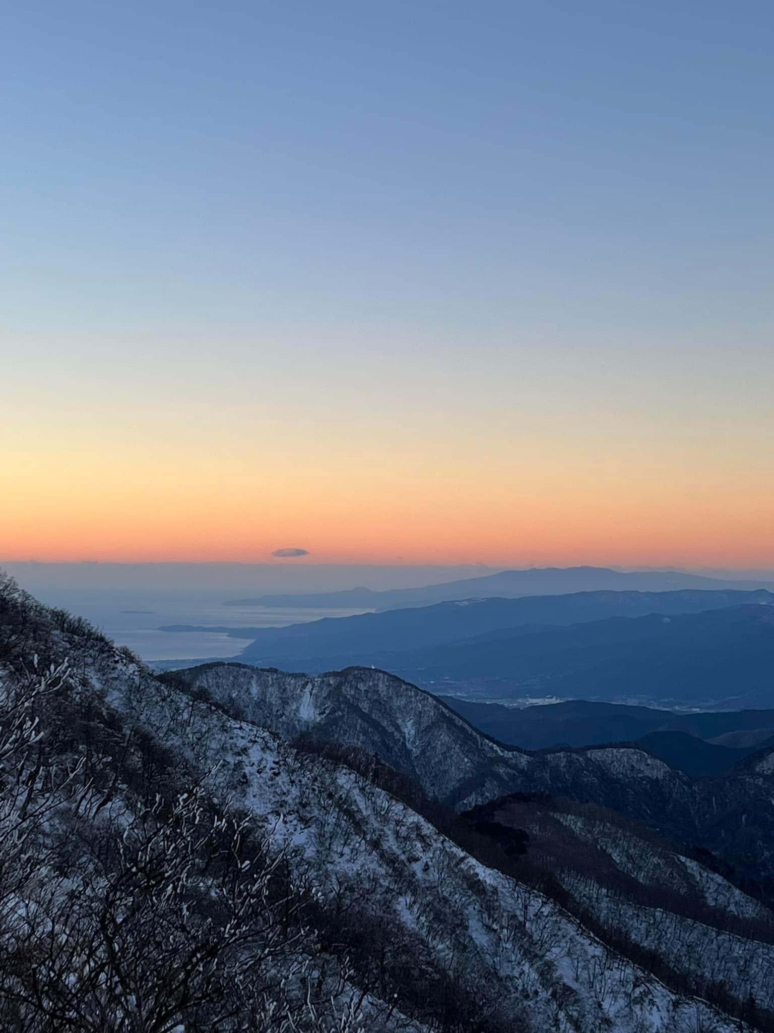 結果、塔ノ岳の前から丹沢山、蛭ヶ岳への稜線、そして北側(相模湖方面)への下山ルートにかけて、2日前に降った雪が思った以上にあったのでペース上がらず中継点にてリタイア。それでも素晴らしい夜明けの景色に出くわし、とても楽しい雪道歩きとなりました。今、最高の気分。